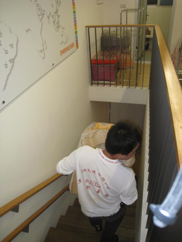 本搬遷案特殊處: 1. 客戶自行拆卸與包裝器材 (費用較為實惠) 2. 客戶新地址的地點有電梯到要多爬一層樓梯 較繁瑣 。