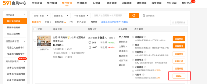 您可以進入【會員中心】-【物件管理】或【AI管理】頁面查看。